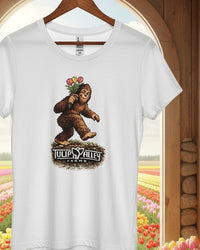 Our Winking Bigfoot Tulip Bouquet T-Shirt features everyone’s favorite Pacific Northwest legend holding a fresh bouquet of tulips — and giving a little wink while he’s at it. It’s bold, playful, and unmistakably PNW.